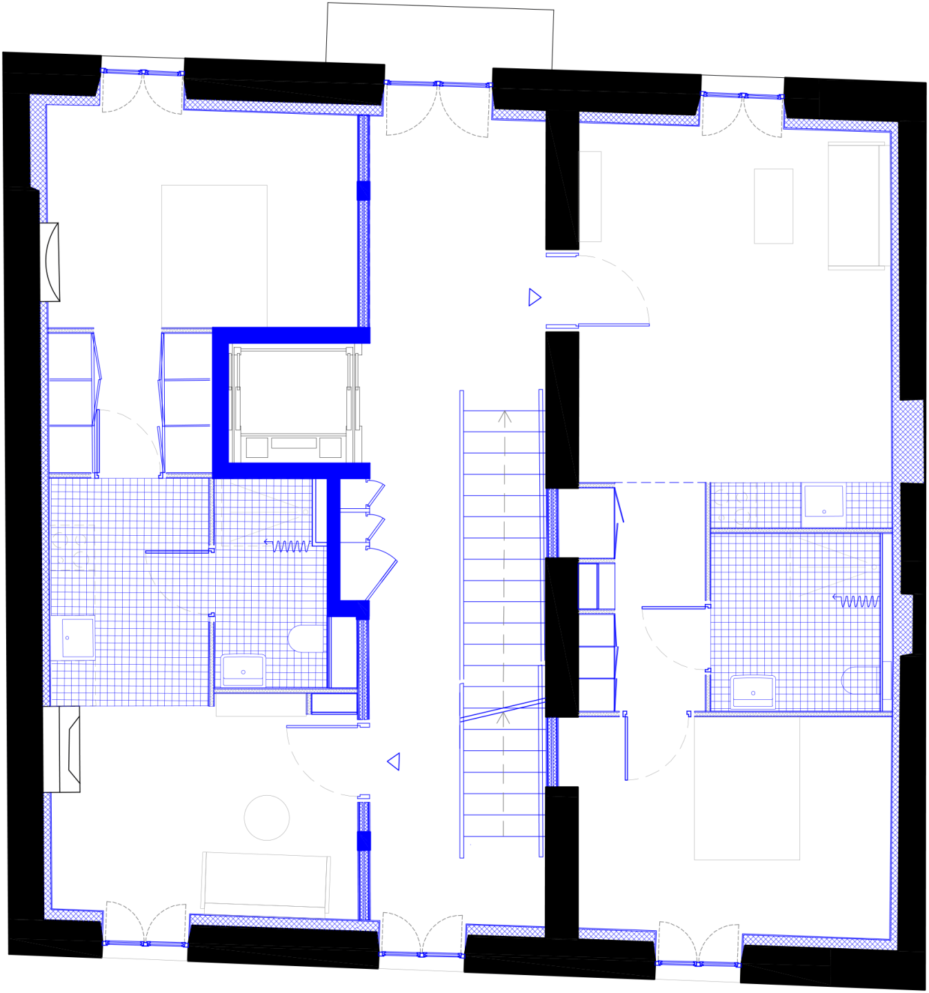 Les travaux visent à concrétiser les demandes des futurs occupants à l’aide d’une conception simple, basée sur la trame constructive initiale du bâtiment. Un long couloir habitable et un large escalier permettent de desservir les logements ainsi que les espaces partagés situés au rez-de-jardin. Le projet vise une performance de confort optimal pour les résidents, à travers des réflexions sur l’acoustique, la robustesse des matériaux, leur réparabilité et le rapport du bâtiment avec l’extérieur.